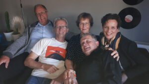 Later hebben we deze foto ‘nagespeeld’. Volwassen en wel gingen we in precies dezelfde positie zitten. Dat viel voor ‘baby’ Albert niet mee.